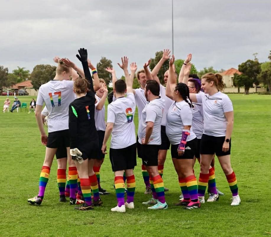 Perth Pride Football embodies community and inclusion in football, providing LGBTQIA+ people in Perth with an all-gender social football and social space.